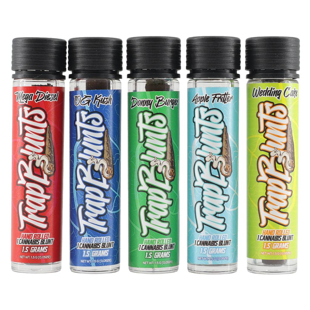 Trap Blunts deliver a bold, classic smoke packed with 1.5 grams of premium flower wrapped in a natural leaf and finished with a reusable glass filter tip for a smoother, cleaner draw. Each blunt is hand-rolled for consistent airflow, even burning, and a full-bodied session from the first spark to the final pull.